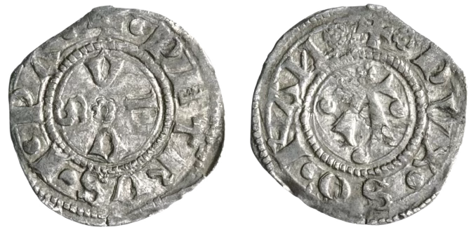 Pietro Giovanni Paolo Cantelmo (†1497). Bolognino di 1° tipo (18 mm – 0.70 g.). Collezione privata.