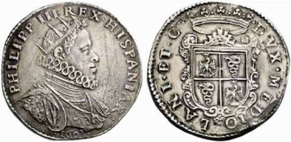 Milano. Filippo III d’Asburgo (1598-1621). Ducatone in argento (31,48 g.; 40 mm.). Ex NAC 44, lotto n. 697. Per gentile concessione di Numismatica Ars Classica NAC AG.